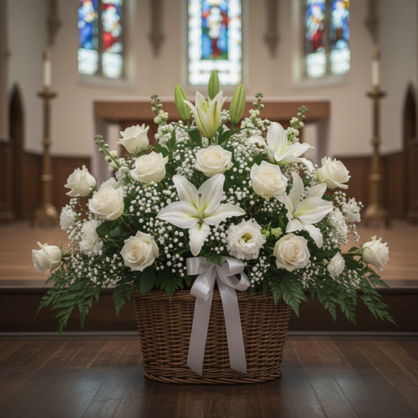 - Thoughtfully placed at the altar or near the casket
